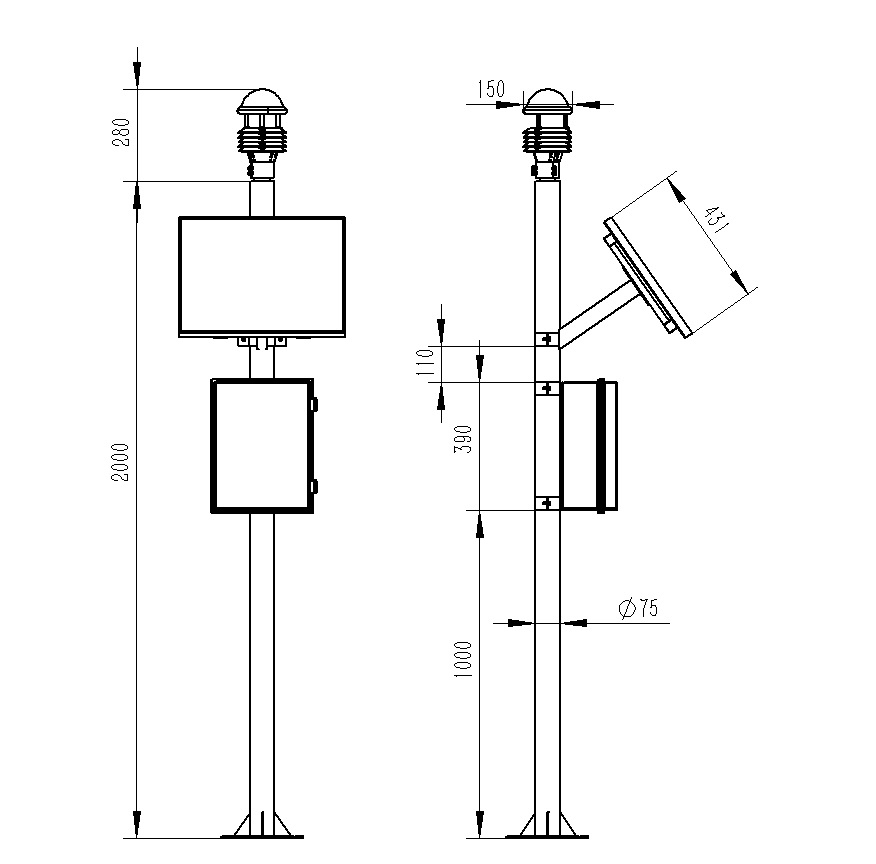 5.两米碳钢支架,顶部无需法兰盘可直接套接传感器